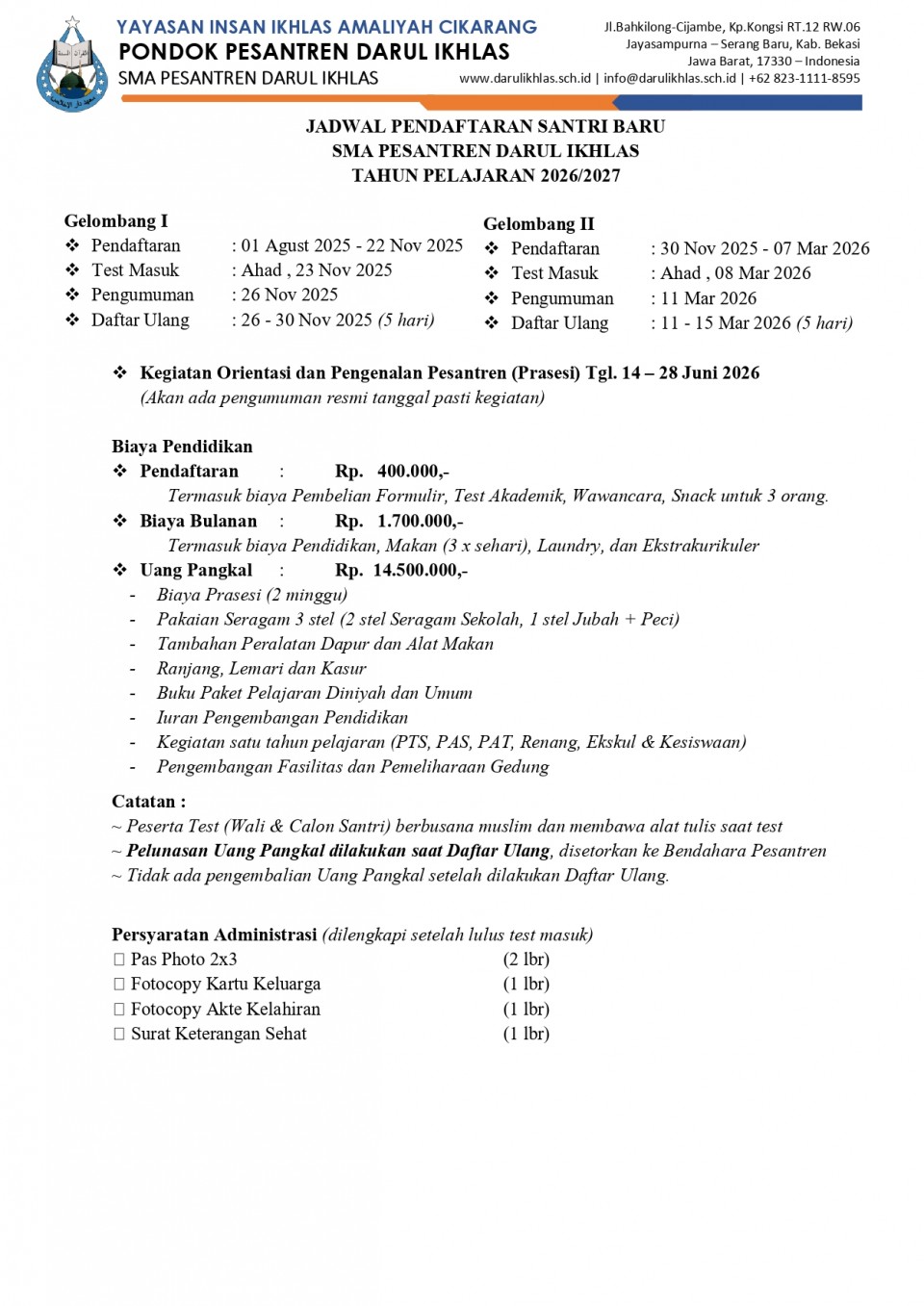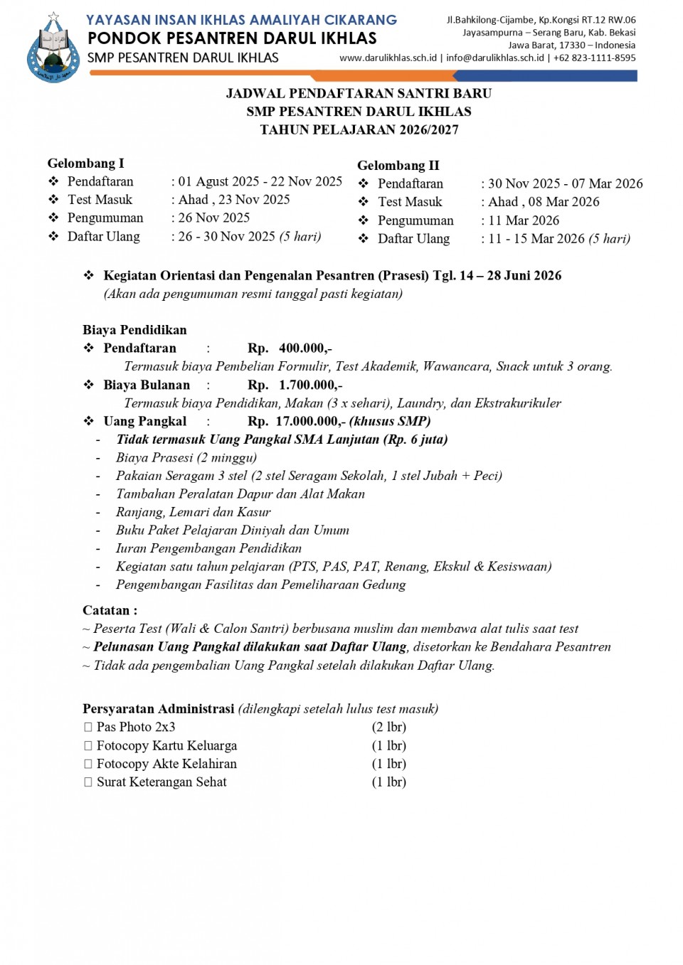 PPDB SMP-SMA Pesantren Darul Ikhlas